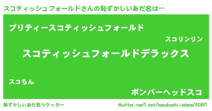 | ヘコむあだ名 | 『スコっふぃ~』『スコぷりん』 |