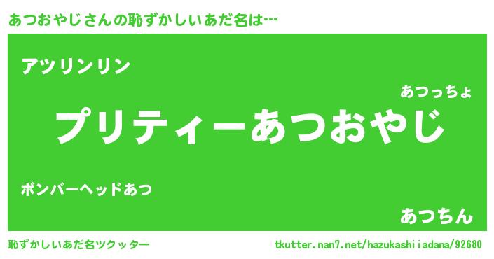 | 欧米人風あだ名 | 『マイケルあつおやじ』 |