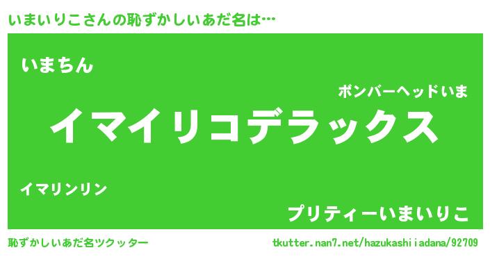 | ヘコむあだ名 | 『いまいりこ(笑)』『いまにゅー』 |