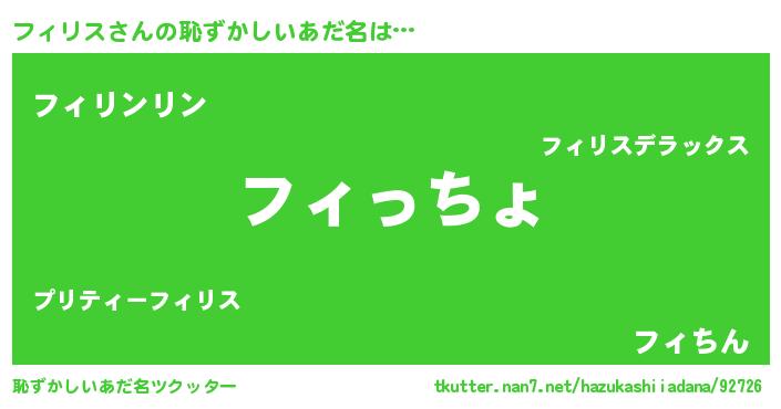| 欧米人風あだ名 | 『フィリスクリステル』 |