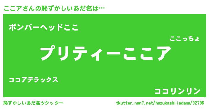 | ヒーロー風カッコイイあだ名 | 『スーパーココア』『正義の使者ここア』 |