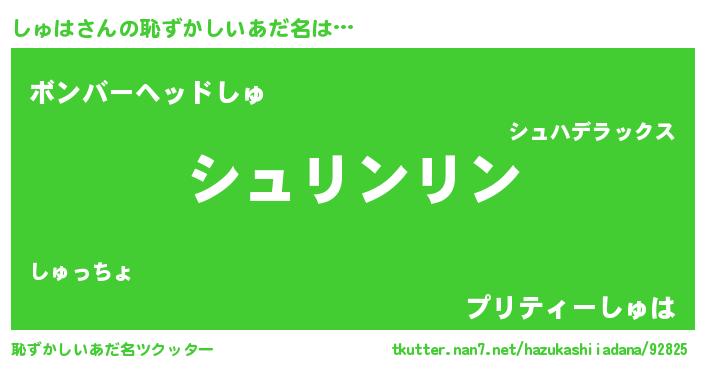 | ヒーロー風カッコイイあだ名 | 『黄金騎士シュ』『正義の使者しゅは』 |