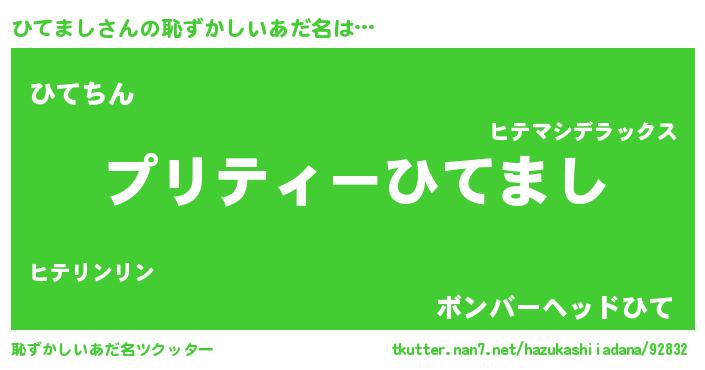 | ヘコむあだ名 | 『ひてもー』『ひてまし(笑)』 |