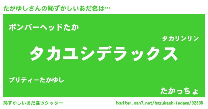 | ヒーロー風カッコイイあだ名 | 『ウルトラ戦士タカユシ』『炎刃騎士タカ』 |