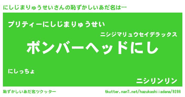 | 料理風あだ名 | 『にしじまりゅうせいごはん』 |