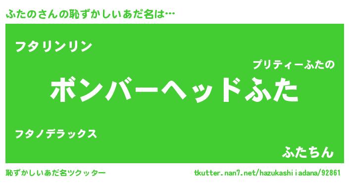 | ヘコむあだ名 | 『ふたお』『ふたの(遠い目)』『豆乳』 |