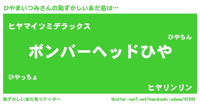 | ヘコむあだ名 | 『ひやぷりん』『ひやまいつみ(遠い目)』 |