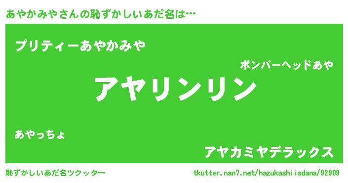 | 意味不明あだ名 | 『住所不定無職あやかみや(93歳)』 |