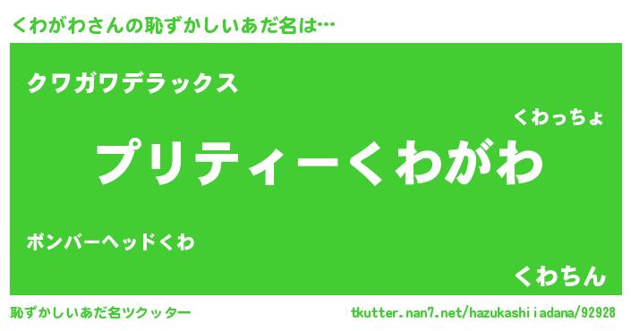 ヘコむあだ名 | 『くわもー』『くわがわ(遠い目)』 |