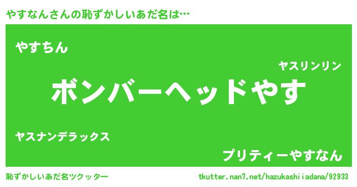 | ヘコむあだ名 | 『やすなん(笑)』『やすもー』 |
