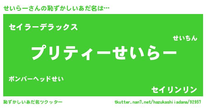 | 男性向けラノベタイトル風あだ名 | 『せいらーに滅ぼされるだけの簡単なお仕事です』 |
