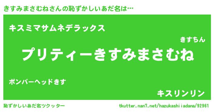 | 男性向けラノベタイトル風あだ名 | 『きすみまさむねの憂鬱』 |