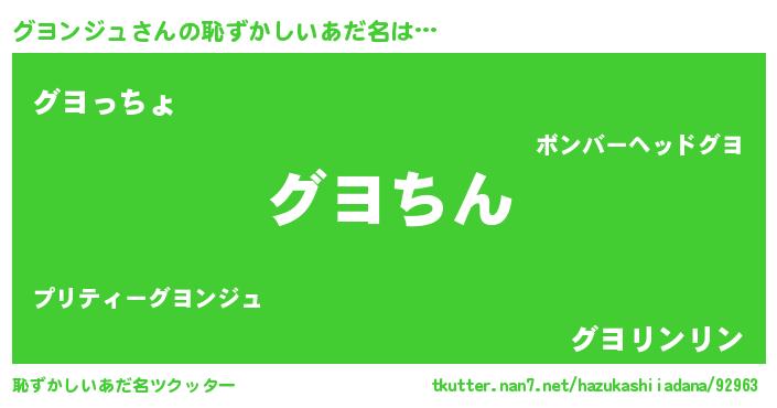 | 意味不明あだ名 | 『永久保存グヨンジュ』 |