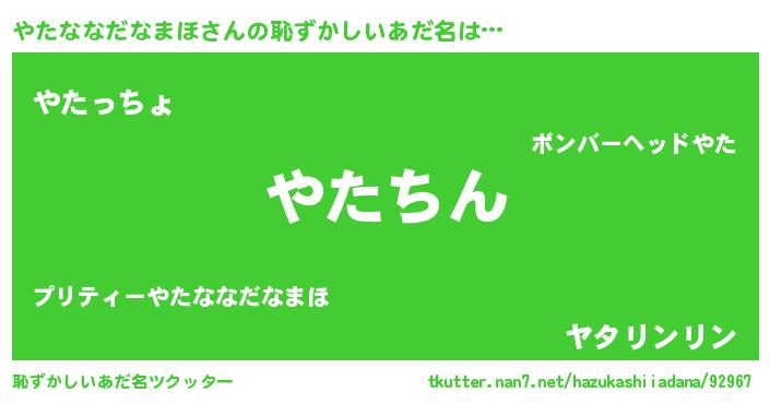 | 欧米人風あだ名 | 『ダルビッシュやたななだなまほ』 |