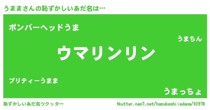 | 欧米人風あだ名 | 『ダレノガレうまま』『ウサインうまま』 |