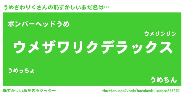 | ヒーロー風カッコイイあだ名 | 『仮面ウメダー』『最強戦士ウメザワリク』 |