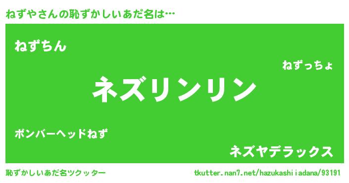 | ポケモン風あだ名 | 『ヒネズヤ』『ゼニネズ』『ネズゴンZ』 |
