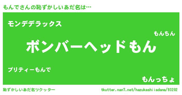 | 欧米人風あだ名 | 『ダニエルもんで』『ケンブリッジもんで』 |