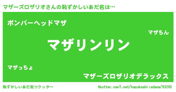 | ヘコむあだ名 | 『マザぷりん』『マザーズロザリオ(笑)』 |