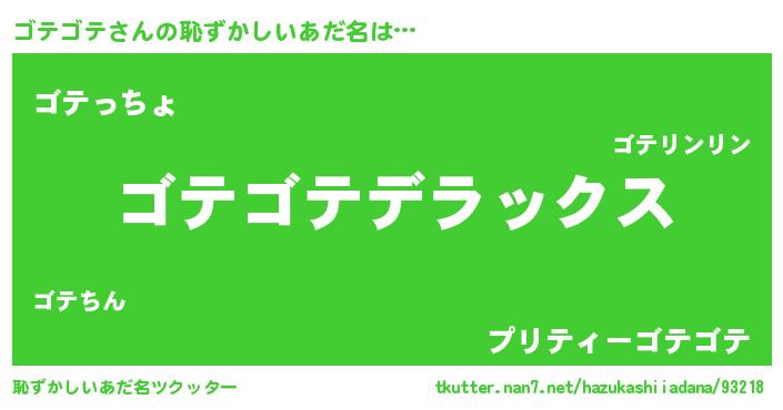| ヘコむあだ名 | 『豆乳』『ゴテにゅー』『ゴテぷりん』 |