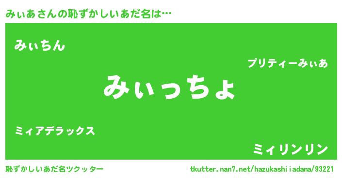 | ヒーロー風カッコイイあだ名 | 『ウルトラみぃあマン』『ネオミィア』 |