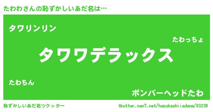 | ヒーロー風カッコイイあだ名 | 『仮面タワダー』『超時空戦士タワワ』 |