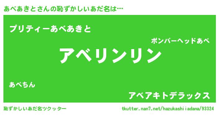 | 意味不明あだ名 | 『とにかく怪しいあべあきと』 |