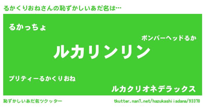 | ヘコむあだ名 | 『るかっちょ』『なまこ酢』 |