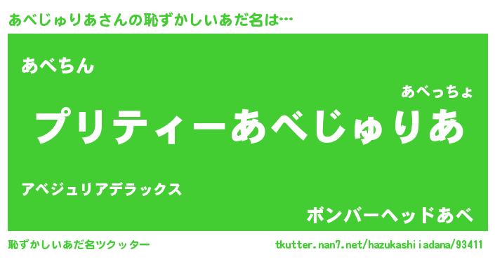 | ヒーロー風カッコイイあだ名 | 『スーパーアベジュリア』『仮面アベダー』 |