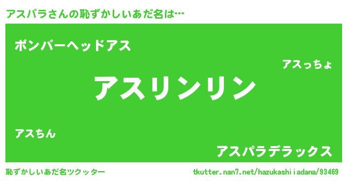 | ヒーロー風カッコイイあだ名 | 『天弓騎士アス』『慈愛の使者アスパラ』 |