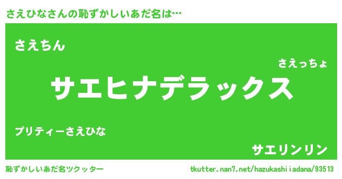 | ヒーロー風カッコイイあだ名 | 『超時空戦士サエヒナ』『ネオサエヒナ』 |