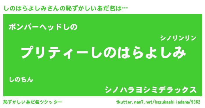 | 胡散臭い通販商品みたいなあだ名 | 『モテモテ間違いなしブレスレット…その名も「しのはらよしみ」』 |