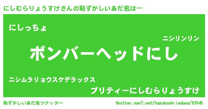 | 男性向けラノベタイトル風あだ名 | 『ノーゲーム・ノーニシムラリョウスケ』 |