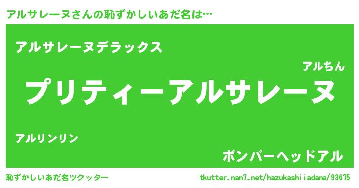 | 男性向けラノベタイトル風あだ名 | 『アルサレーヌアートオンライン』 |