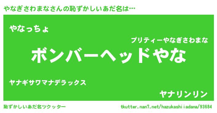 | 意味不明あだ名 | 『眠気覚ましガムやなぎさわまな味』 |