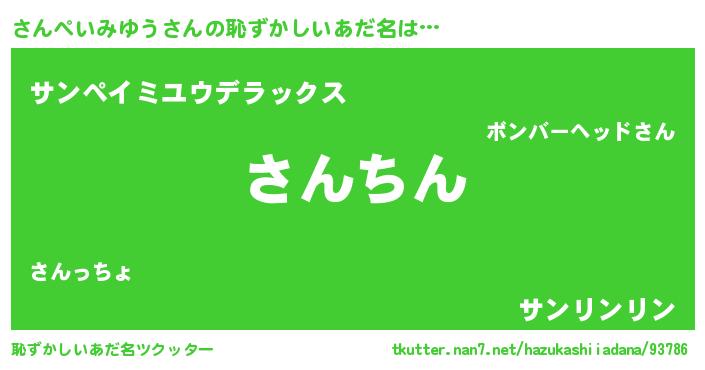 | ヘコむあだ名 | 『さんぺいみゆう(苦笑)』『さん太郎』 |