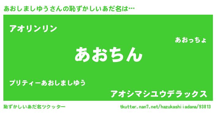 | ヘコむあだ名 | 『あおしましゆう(笑)』『あおお』 |