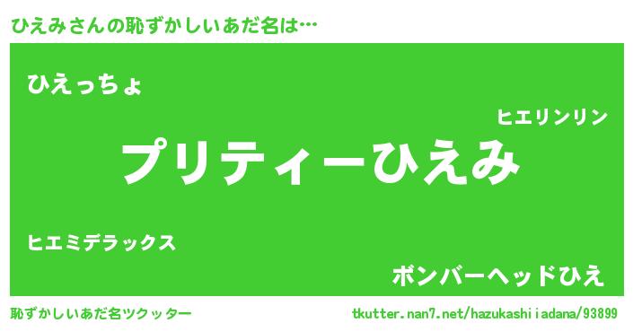 | ヒーロー風カッコイイあだ名 | 『スーパーヒエミ』『ウルトラひえみマン』 |