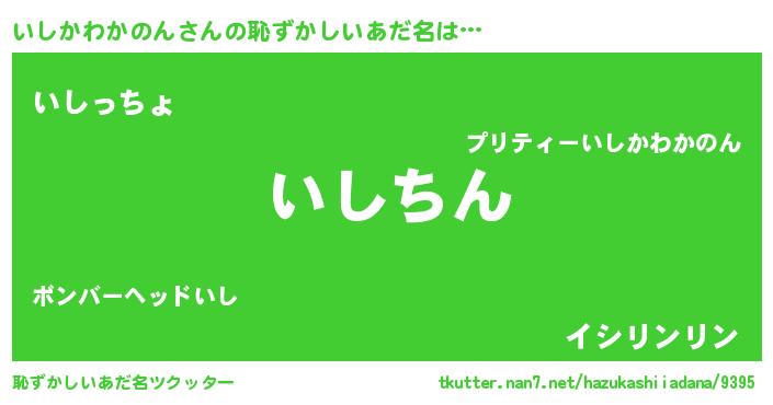 | ヒーロー風カッコイイあだ名 | 『ネオイシカワカノン』『仮面イシダー』 |