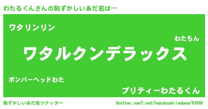 | 意味不明あだ名 | 『自称わたるくん』『ペロリンわたるくん』 |