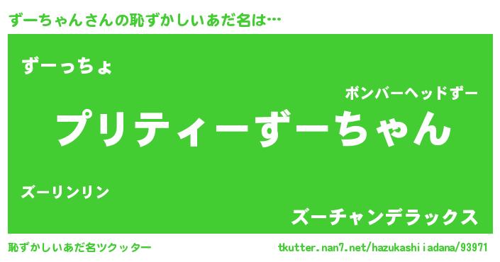 | 意味不明あだ名 | 『ペロリンずーちゃん』『自称ずーちゃん』 |