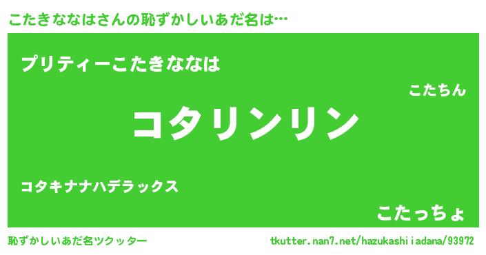| 意味不明あだ名 | 『とにかく怪しいこたきななは』 |