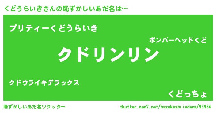 | ヒーロー風カッコイイあだ名 | 『天弓騎士クド』『仮面クドダー』 |