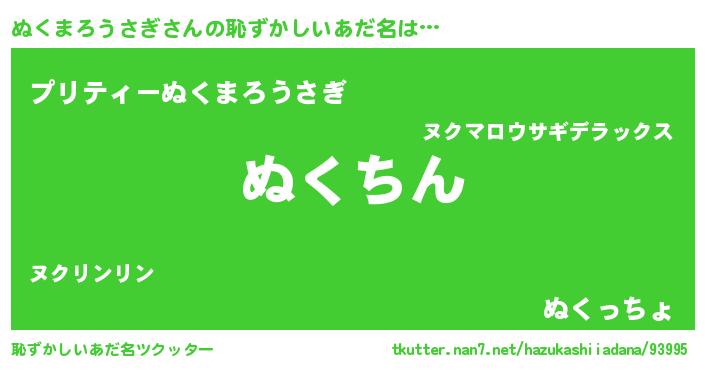 | ヘコむあだ名 | 『ぬくまろうさぎ(爆)』『ぬくにー』 |