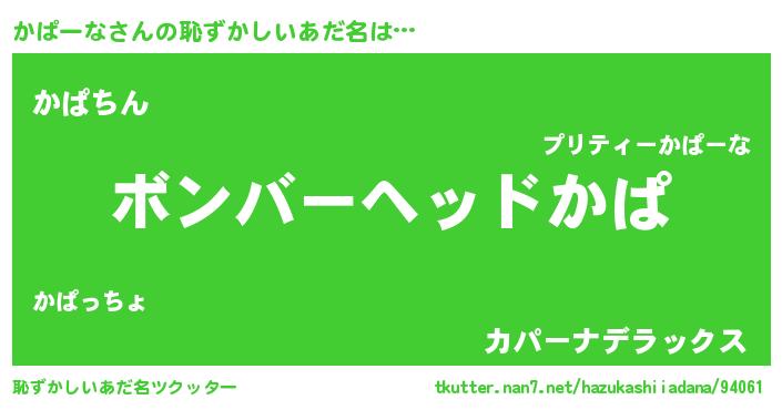 | 男性向けラノベタイトル風あだ名 | 『かぱーなに滅ぼされるだけの簡単なお仕事です』 |