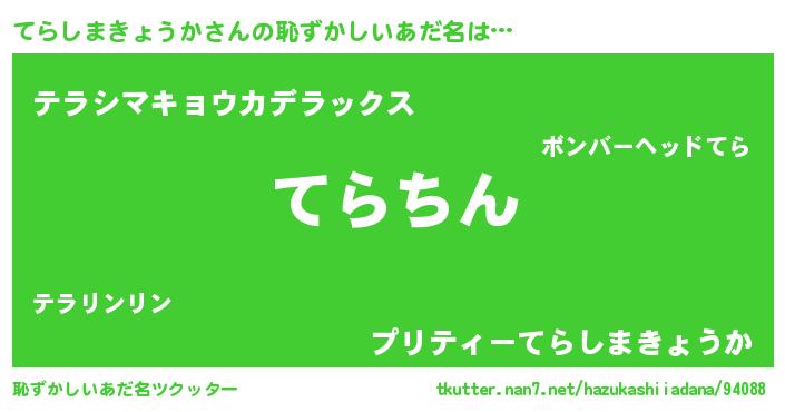 | ヘコむあだ名 | 『てらしまきょうか(遠い目)』『てらふぇ~』 |