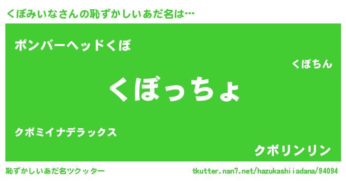 | 男性向けラノベタイトル風あだ名 | 『くぼみいなに滅ぼされるだけの簡単なお仕事です』 |