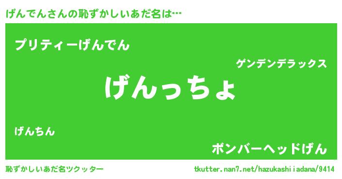 | 意味不明あだ名 | 『げんでんフォーエバー』 |