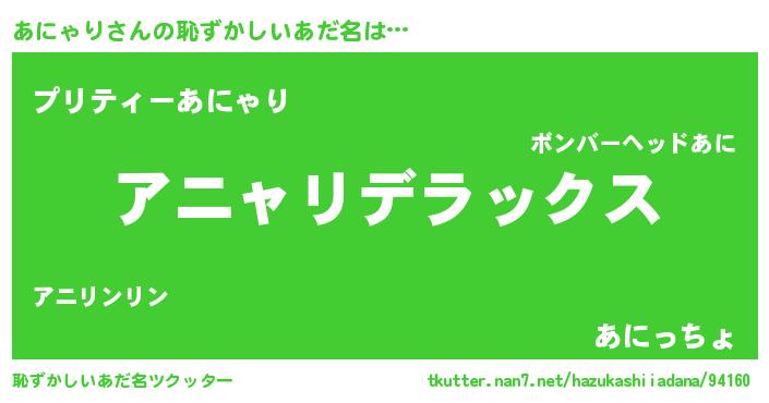 | ヒーロー風カッコイイあだ名 | 『超時空戦士アニャリ』『仮面アニダー』 |