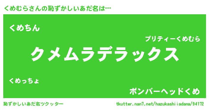 | 意味不明あだ名 | 『自称くめむら』『永久保存くめむら』 |